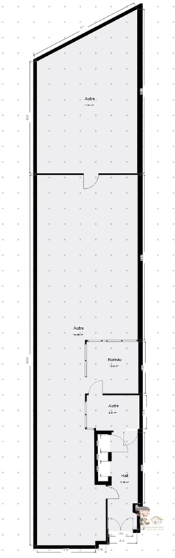 Pièce entre les caves et l'espace commercial (11m²), Bureau (13m²), 1 cave 3 pièces (13m²;8m²;5m²), Espace ouvert (130m²) & Salon (18m²).