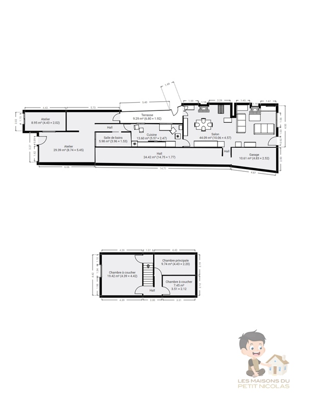 - Séjour : 44 m²