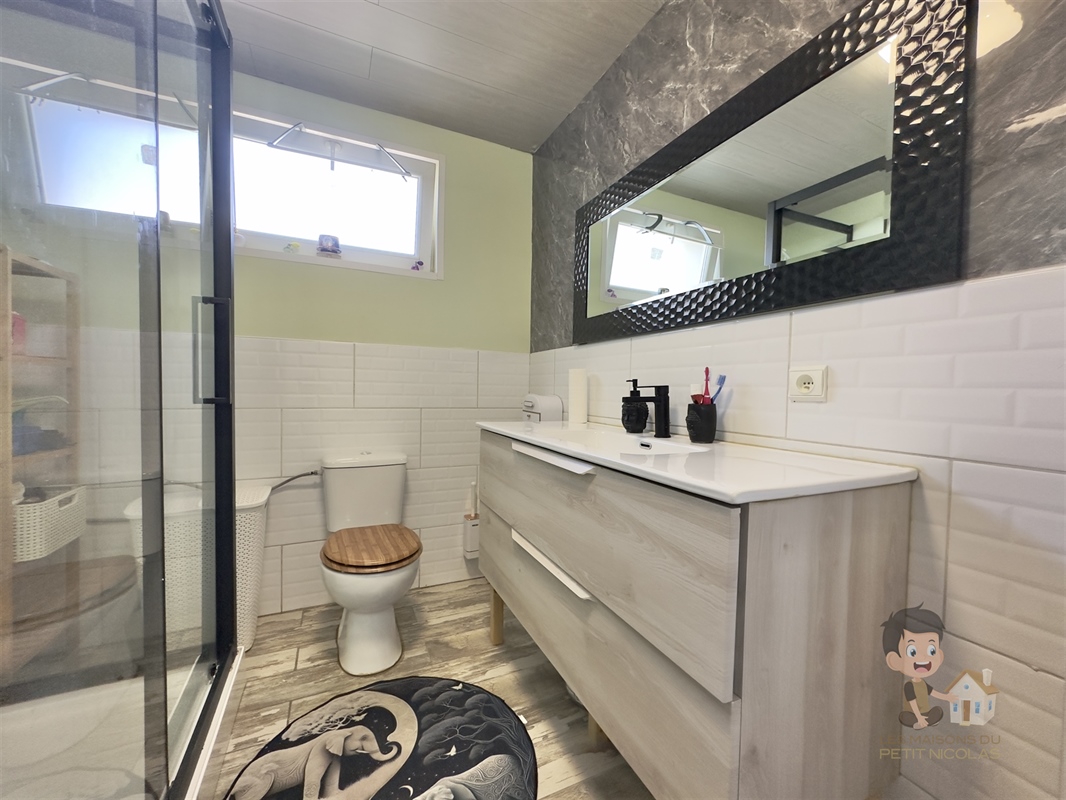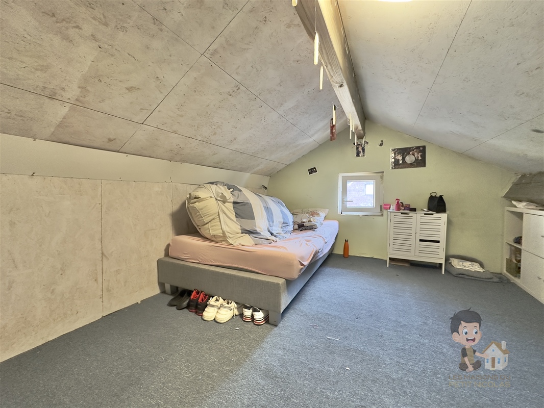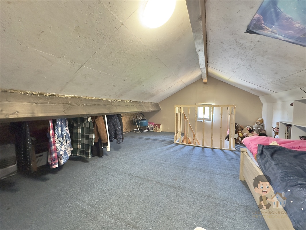 À l’étage : 2 pièces supplémentaires pouvant servir de chambres ou d’espaces polyvalents (bureau, salle de jeux, dressing…) malgré une hauteur sous plafond réduite par les mansardes