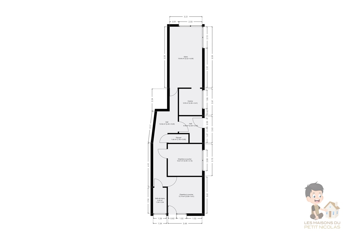 Superficie habitable : 94,50 m²